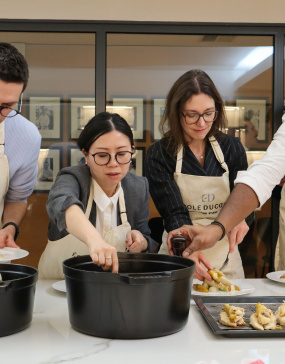 “Une belle expérience ! J’ai suivi le cours « Plein feu sur les pâtes » avec le chef Antonio Cortes qui nous a guidé dans la réalisation de la recette. Nous avons épluché, taillé, émincé les légumes et préparé les langoustes avant de façonner nos propres raviolis. Le cours est passé vite mais le résultat était parfait. ”