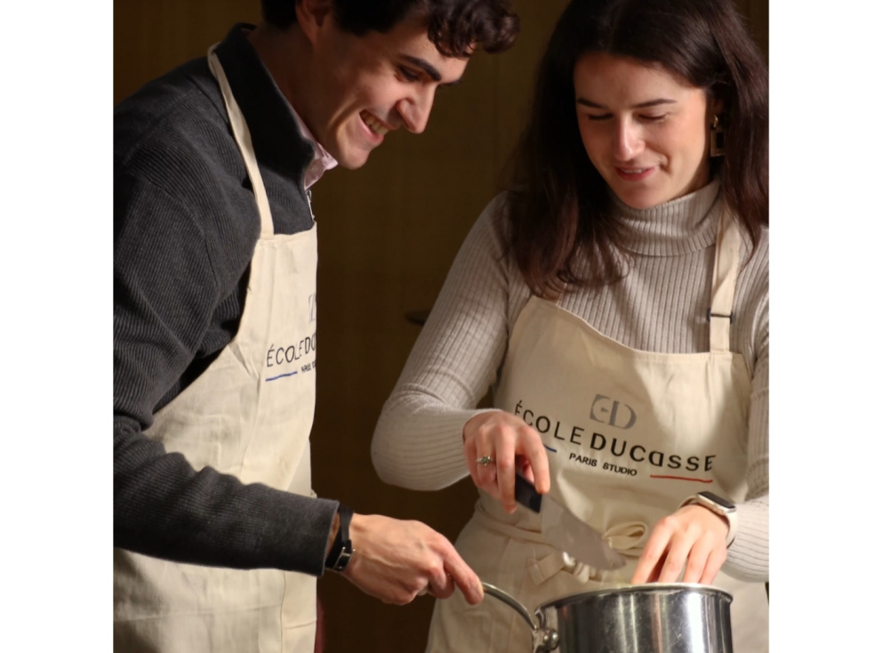 Préparez votre repas à l'école Ducasse Paris Studio, partagez le plaisir de cuisiner ensemble, puis dégustez le en tête-à-tête, dans le confort de votre cocon.